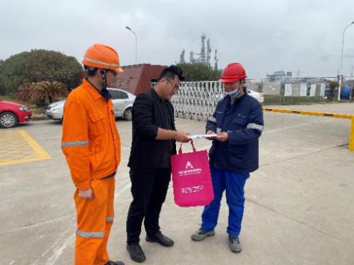 当天上午团支部书记张效玮、副书记彭家乐带领部分团员代表来到金山第二工业区东曹(上海)聚酯氨有限公司、上海东睿化学有限公司、上海雪垠化工有限公司等企业,为安全管理人员送上了由守安集团课题组编写的《74种重点监管危险化学品安全周知卡》以及《化工和危化品重大生产安全事故隐患判定》,为企业的安全生产保驾护航。