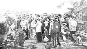 2月17日,正月初一。歌声、鼓声、锣声、爆竹声,响彻全镇。街上人山人海,不论男女老少,身上都穿着干净整齐的衣服,手里拿着红绿纸旗,从四面八方拥向庆祝大会的会场。