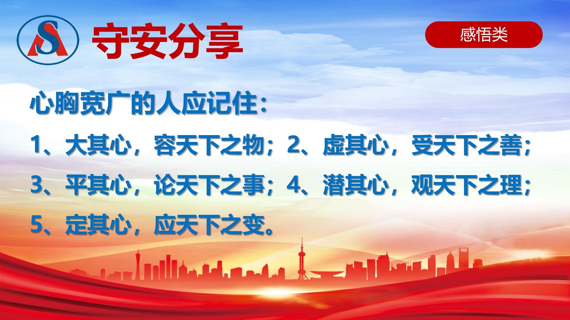 心胸宽广的人应记住:1、大其心,容天下之物;2、虚其心,受天下之善;3、平其心,论天下之事;4、潜其心,观天下之理;5、定其心,应天下之变。