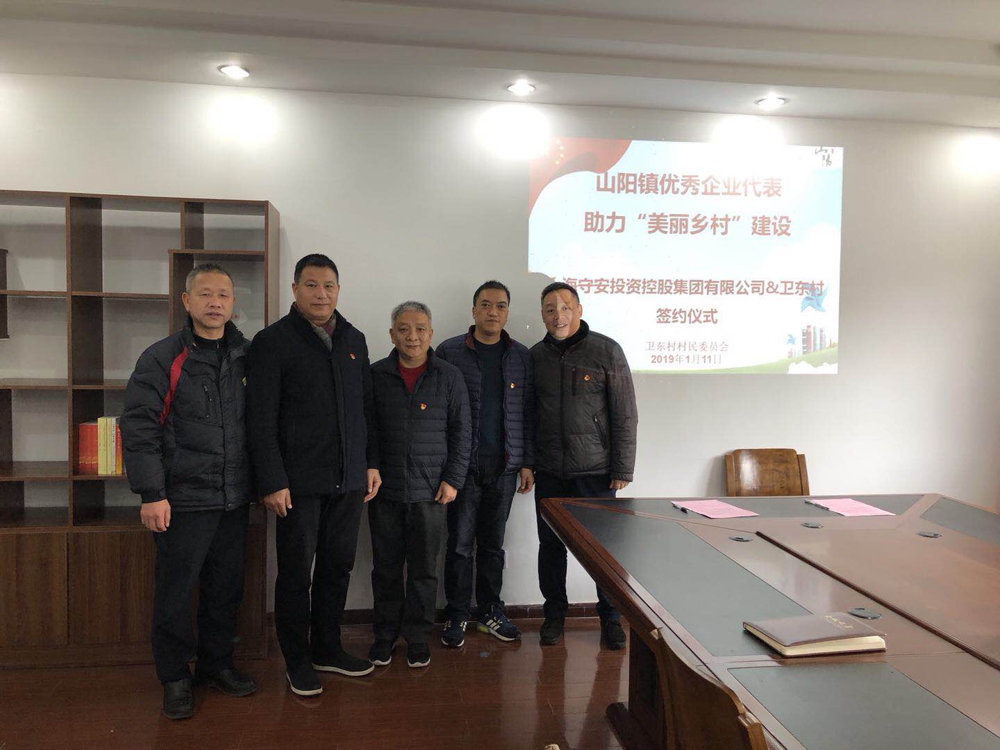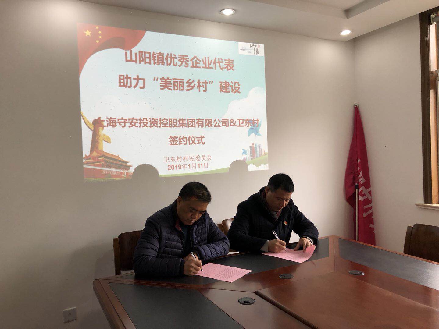 2019年1月11日上午,上海守安投资控股集团有限公司与金山区山阳镇卫东村签订了山阳镇优秀企业代表助力“美丽乡村”建设协议书。