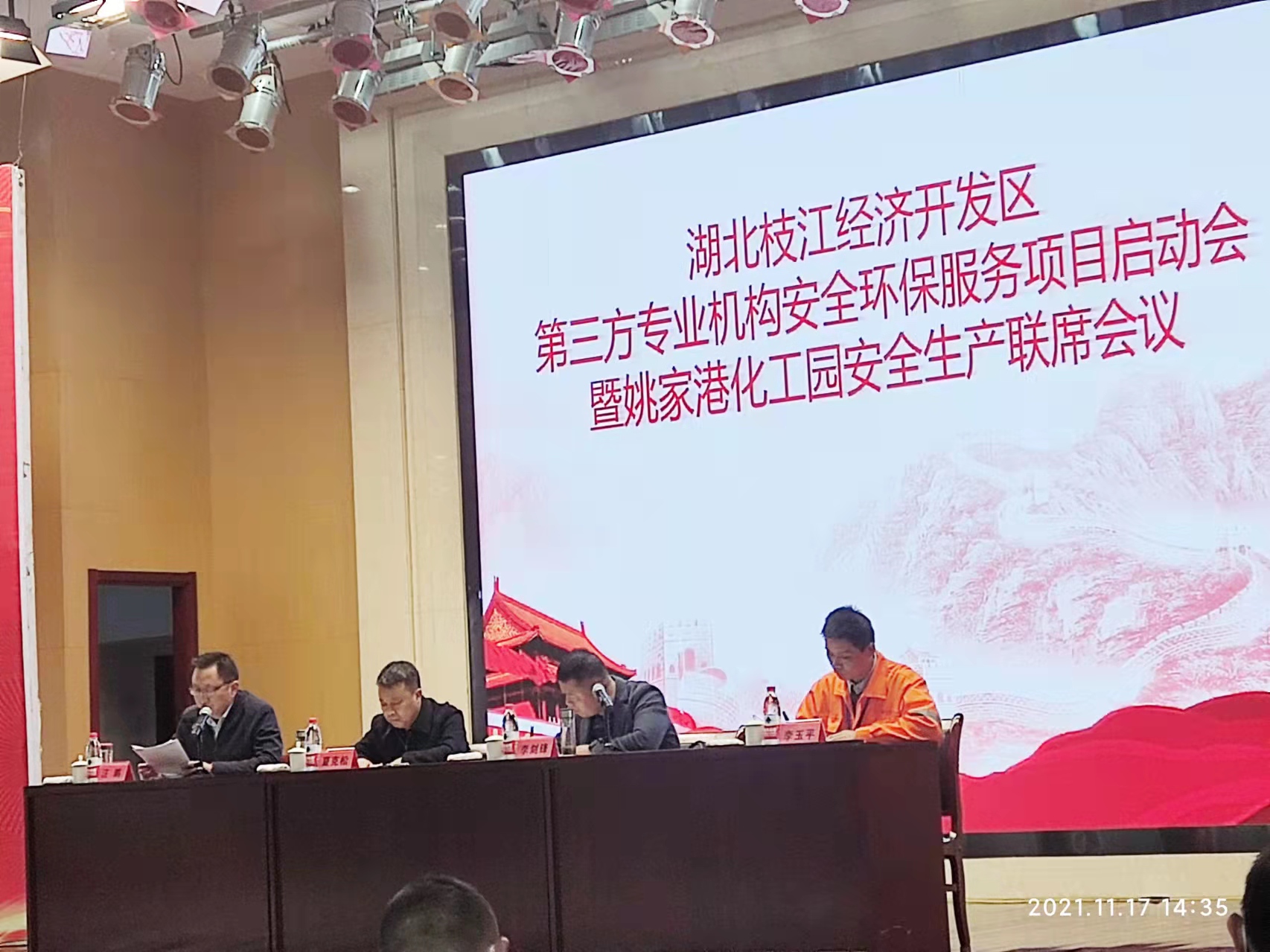 2021年11月17日,由湖北枝江市经济开发区管委会牵头组织的“第三方专业机构安全环保服务项目启动会”暨“姚家港化工园安全生产联席会议”在枝江正式召开。