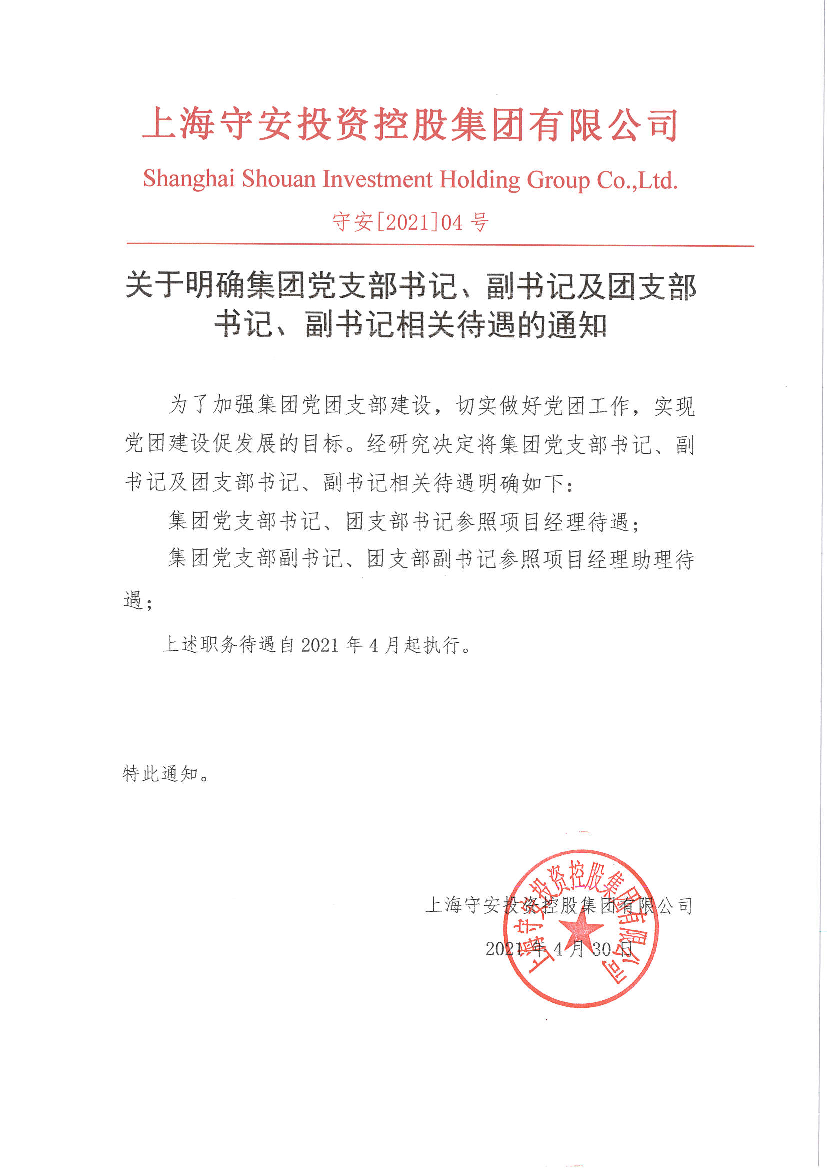 关于明确集团党支部书记、副书记及团支部书记、副书记相关待遇的通知