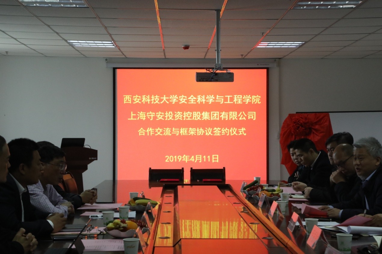 4月11日上午10时,西安科技大学安全科学与工程学院与上海守安投资控股集团有限公司在美丽的古都西安成功举办了合作交流与战略合作框架协议签订仪式。西安科技大学安全学院党委书记杜勇主持了会议。西安科技大学安全学院邓军院长、上海守安投资控股集团有限公司CEO俞新培分别作了发言致辞。嘉宾代表应急管理局副局长刘超、西安市综保区安全环保部部长孙大为等在仪式上发表了讲话。