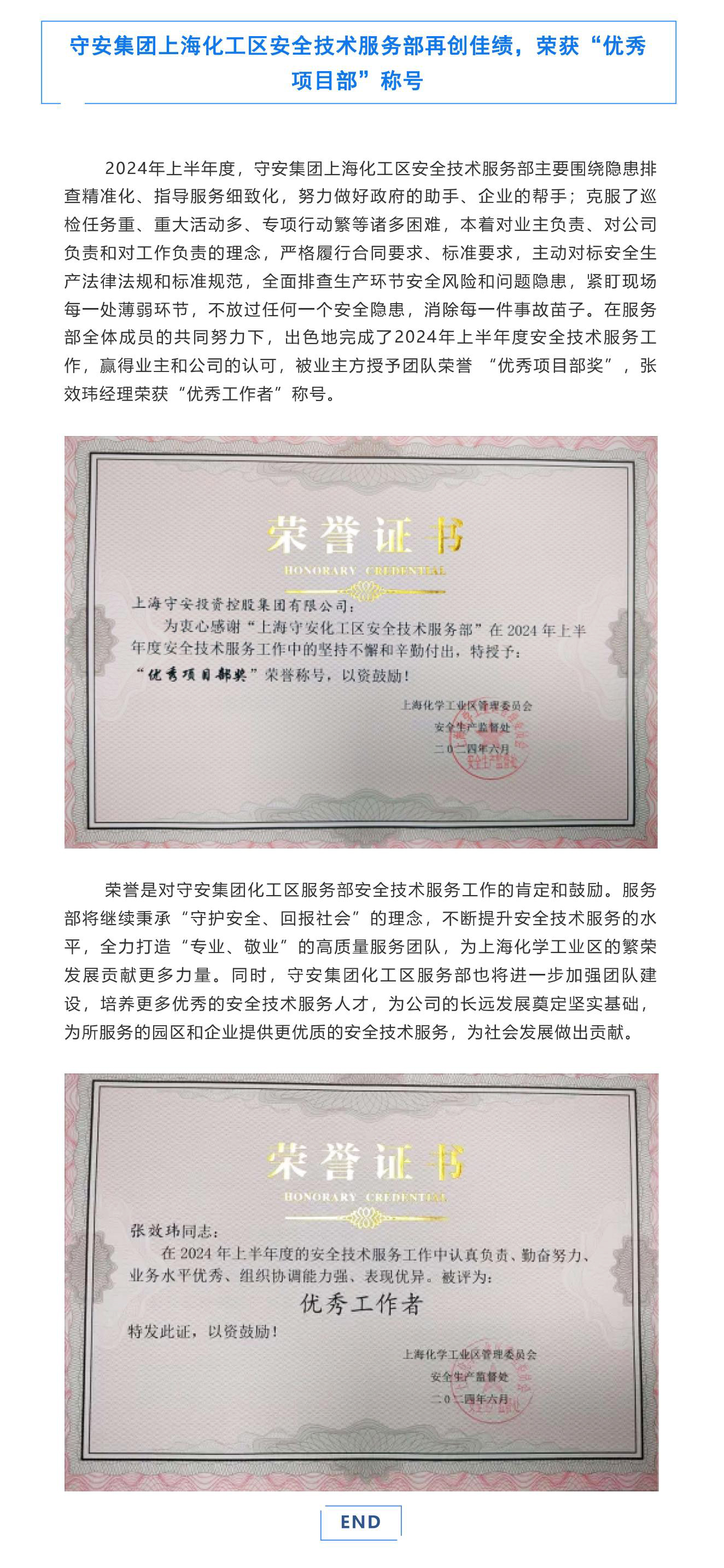 守安集团上海化工区安全技术服务部再创佳绩,获“优秀项目部”等荣誉