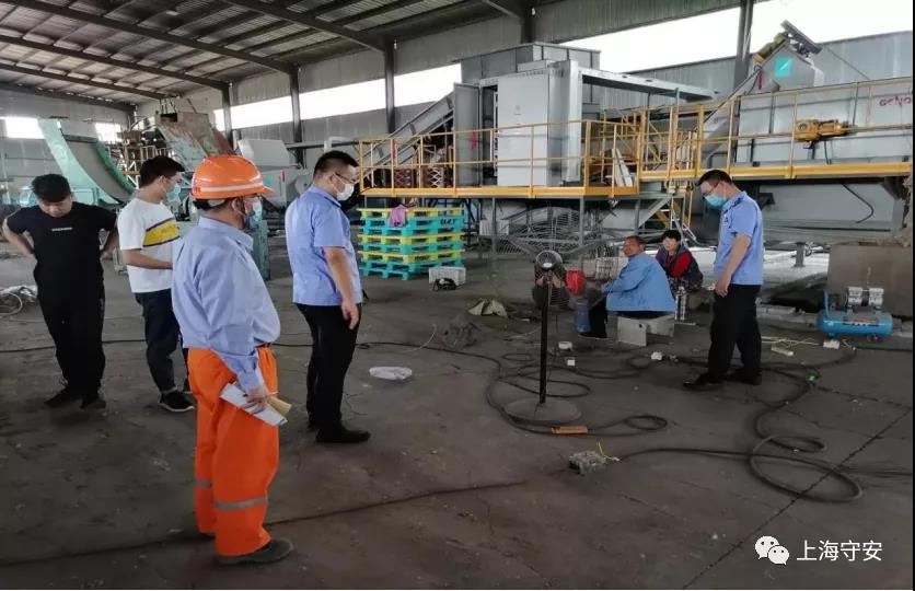 上海守安乐陵项目部陪同市应急管理局对循环经济示范园内火灾隐患较大的企业进行检查。检查的企业是塑料垃圾处理企业,火灾危险性较大,并且现场存在多处用电违规现象,上海守安专家陪同市应急管理局领导在现场与企业负责人就违规用电问题进行了沟通(下图),要求该企业立即整改,及时有效地消除了潜在隐患。