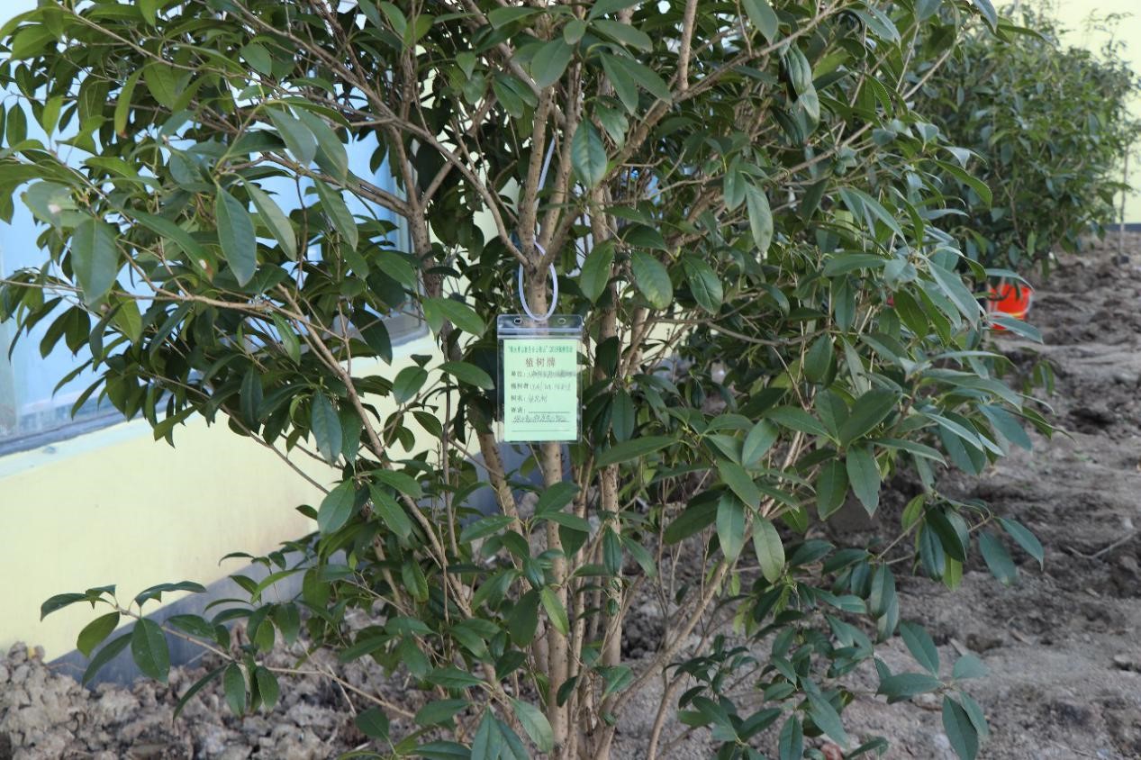 挖坑、培土、浇水,一阵忙碌之后,十几棵树苗挺立在三月的煦风中。每棵树悬挂植树牌,由各部门负责培护。各部门在自己的植树牌上写下寄语,寄托对未来的美好期望。