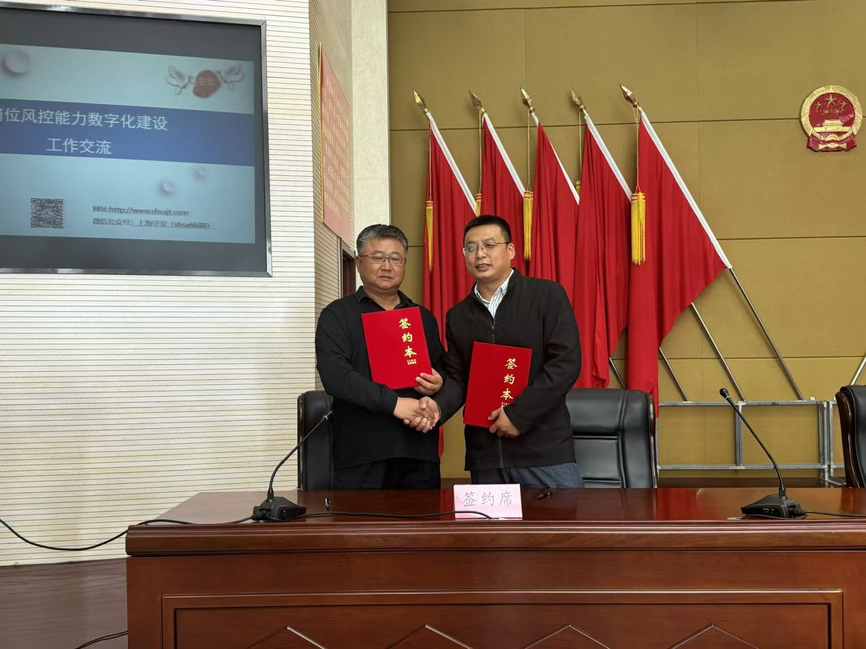 集团副总经理侯乾与两家企业代表签订了“岗位风控能力数字化建设”意向书。