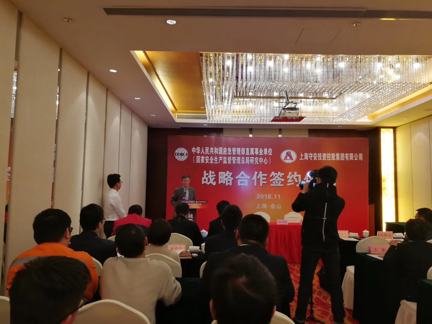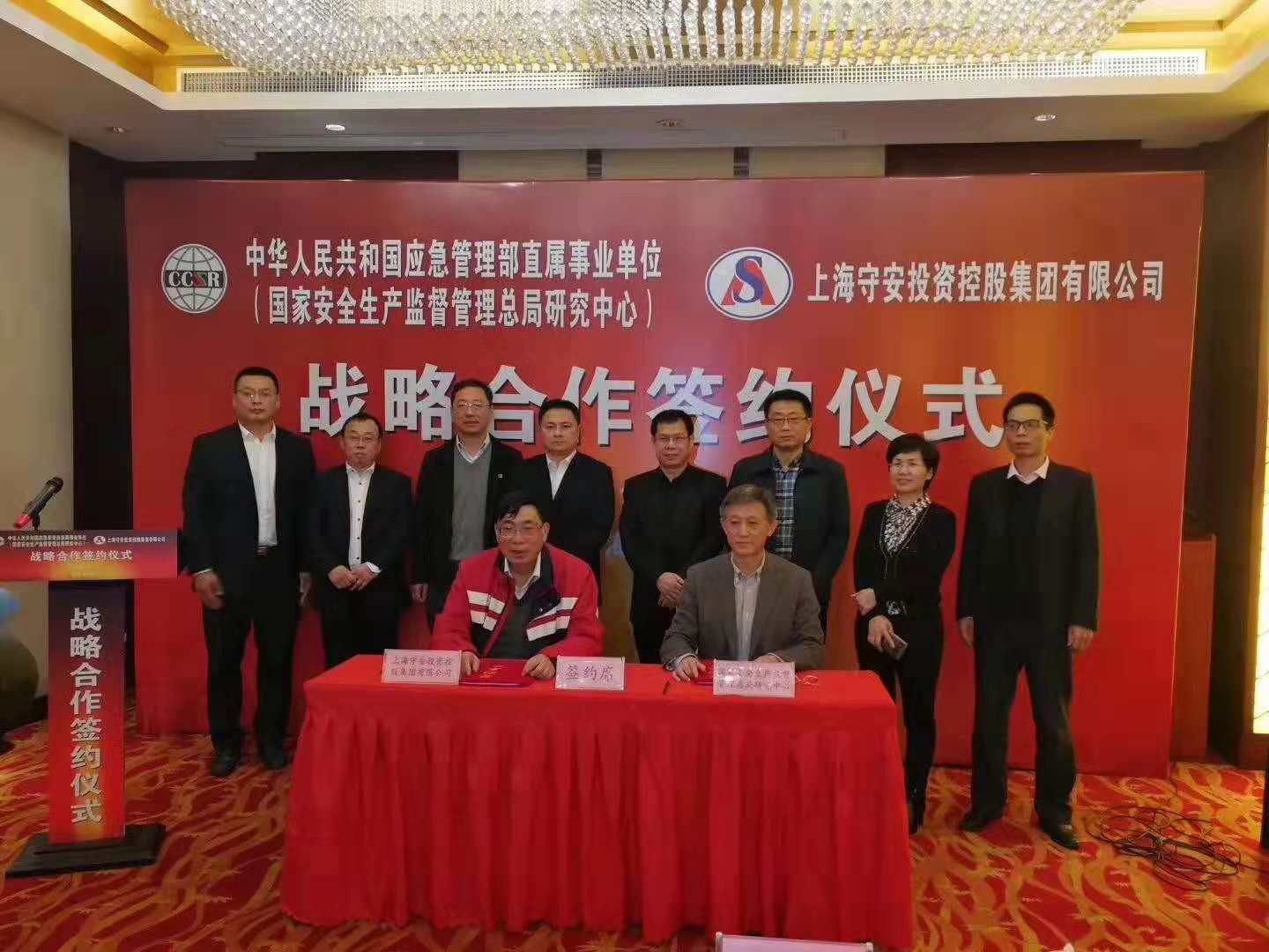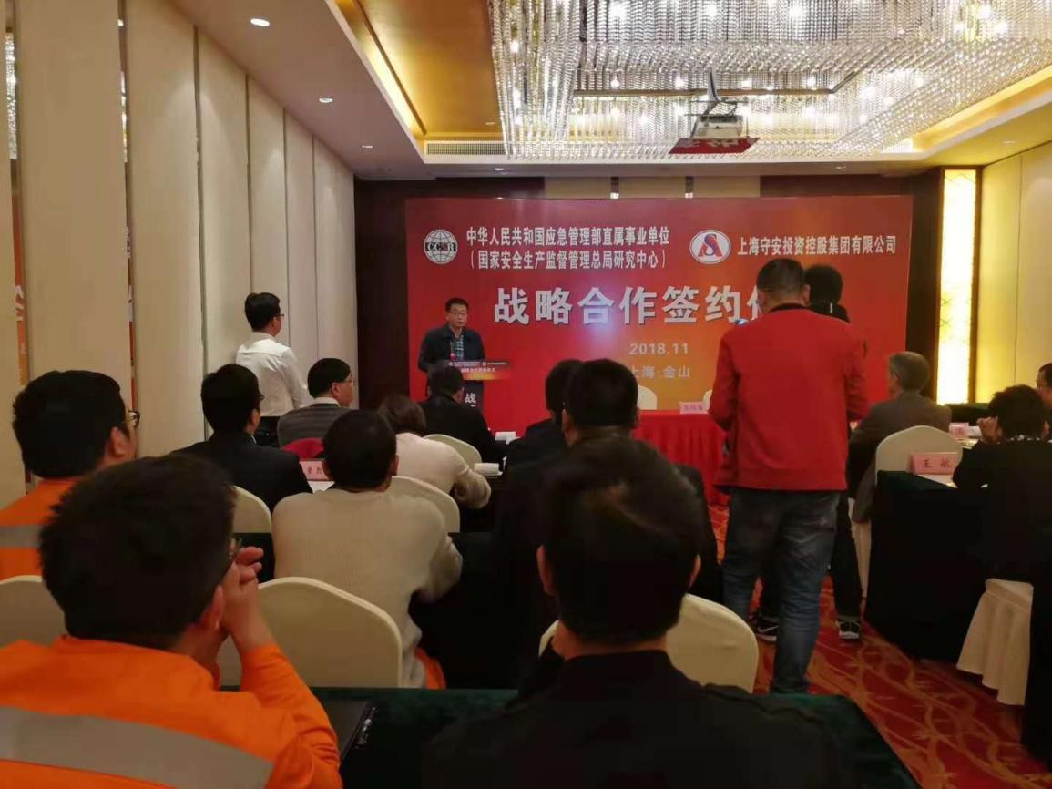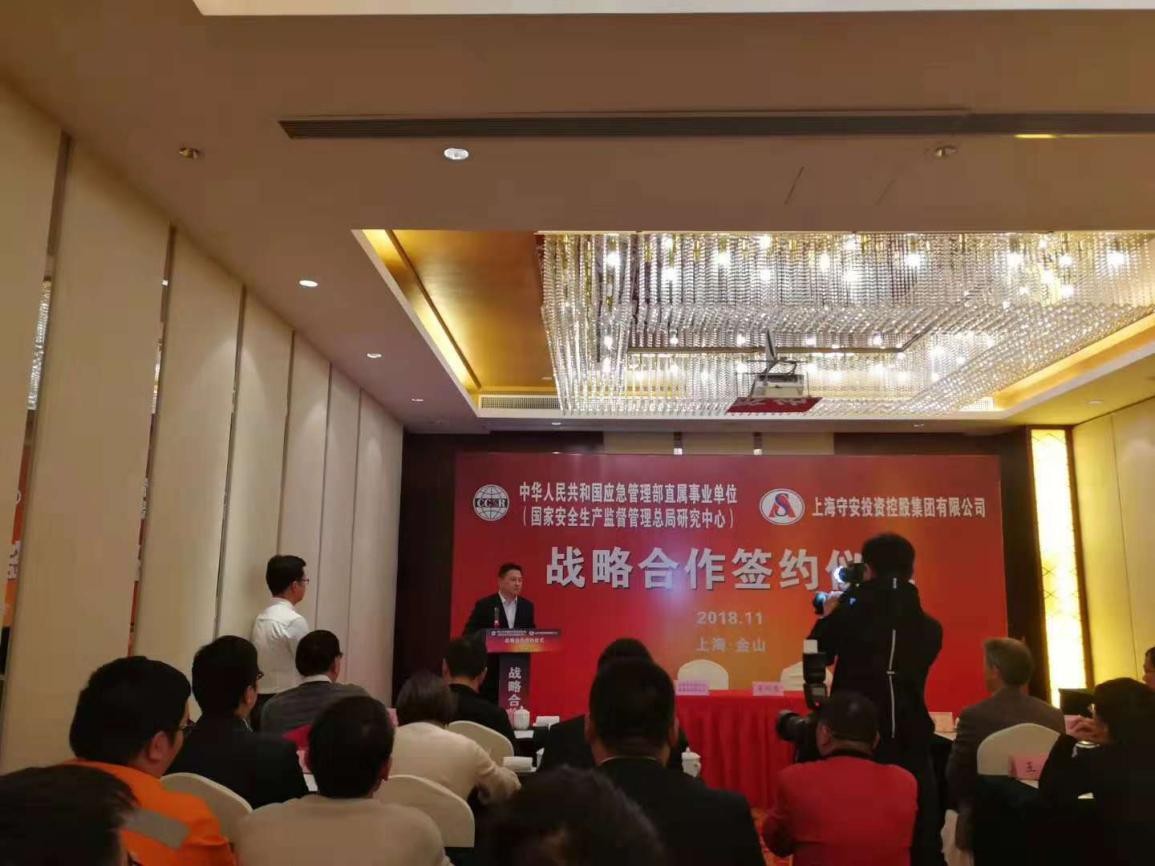 2018年11月23日下午4时,国家安全生产监督总局研究中心(中华人民共和国应急管理部直属事业单位)与上海守安投资控股集团有限公司战略合作签约仪式在杭州湾畔大美金山隆重举行。双方代表在签约仪式上,就签约的背景、合作的内容以及发展路线等方面,做了热情洋溢的发言。