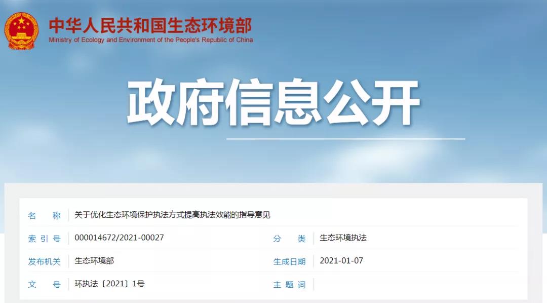 生态环境部办公厅2021年1月7日印发