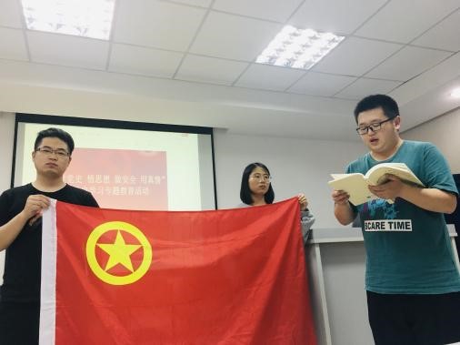 历史的硝烟早已散去,但经历时光沉淀的“一大精神”,仍然激励着一代代热血青年奋勇向前。在观看完微党课后,各位青年团员分别轮流诵读党史节选内容,从党的百年伟大历程中汲取智慧和前行力量,并且交流学习心得。
