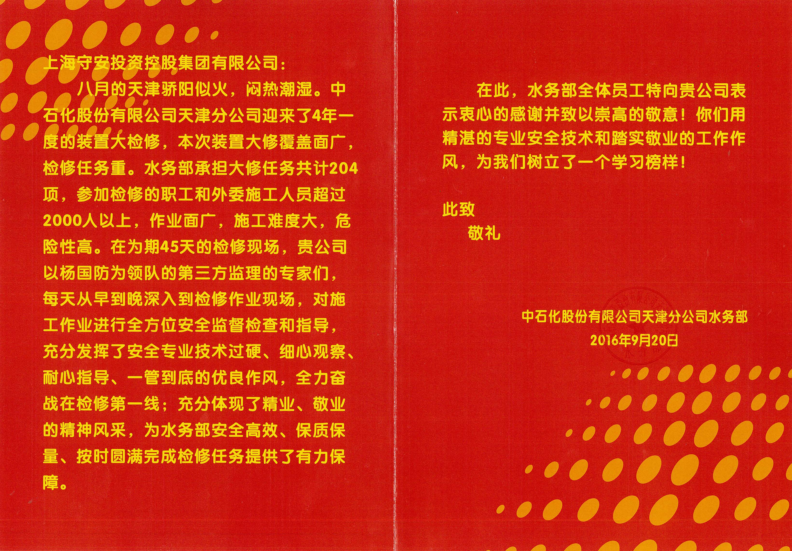 终于,在忙忙碌碌四十多天之后,在辛勤的付出劳动之后,终于迎来了收获的那天,检修项目部收到了业主的感谢信及锦旗,这是项目部每个人的荣誉,是公司的荣誉!
