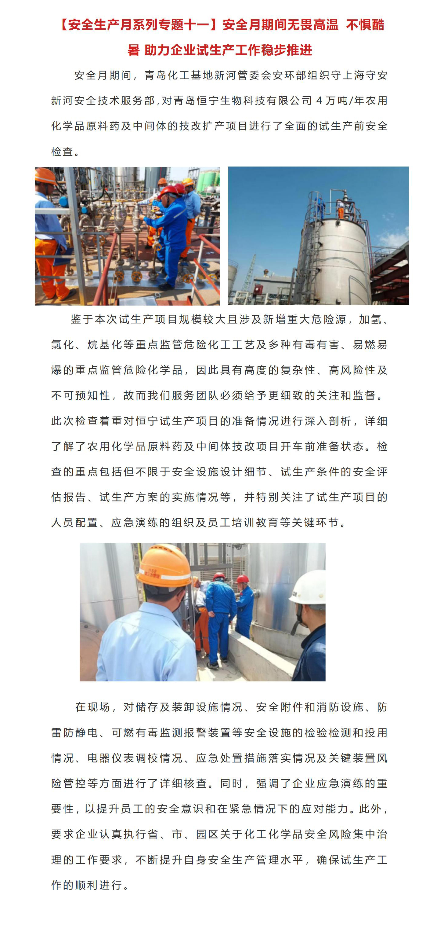 【安全生产月系列专题十一】安全月期间无畏高温 不惧酷暑 助力企业试生产工作稳步推进