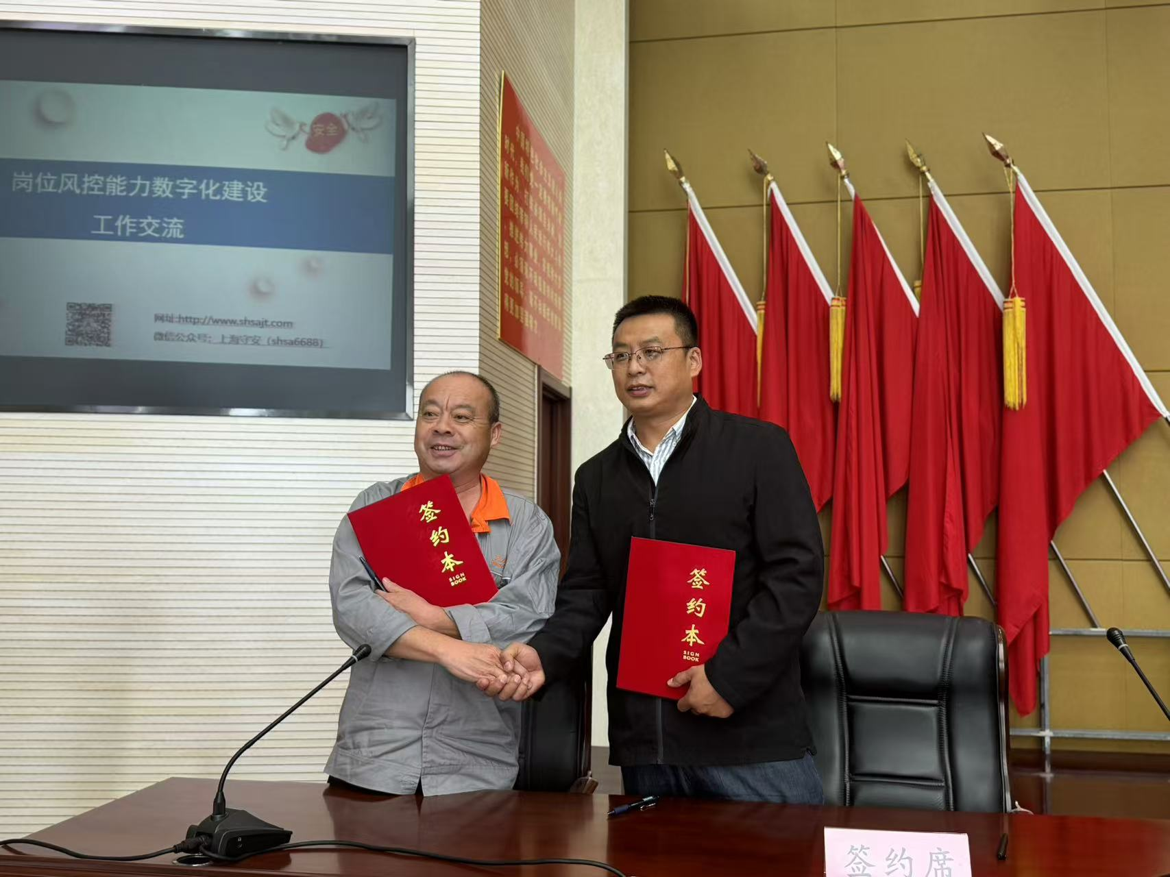 集团副总经理侯乾与两家企业代表签订了“岗位风控能力数字化建设”意向书。
