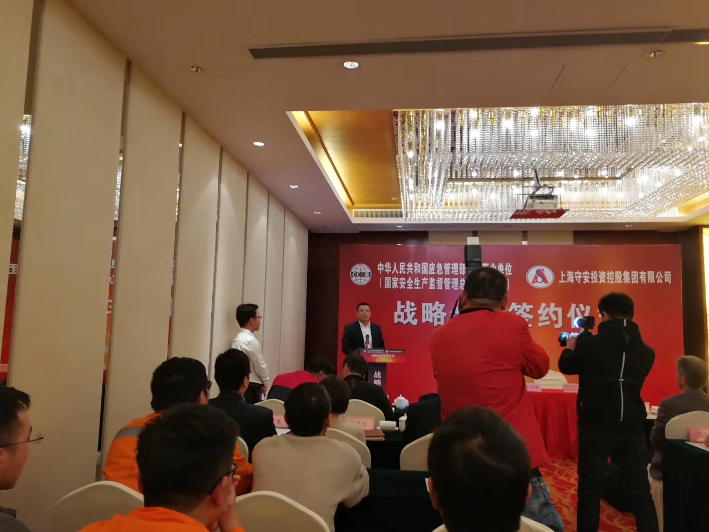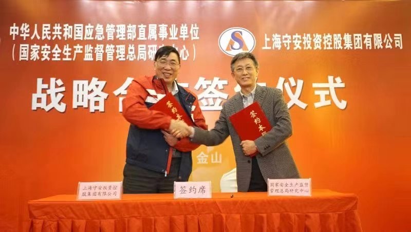 2018年11月23日下午4时,国家安全生产监督总局研究中心(中华人民共和国应急管理部直属事业单位)与上海守安投资控股集团有限公司战略合作签约仪式在杭州湾畔大美金山隆重举行。双方代表在签约仪式上,就签约的背景、合作的内容以及发展路线等方面,做了热情洋溢的发言。